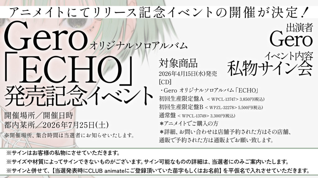 この度 Gero オリジナルソロアルバム「ECHO」の発売が決定しました!